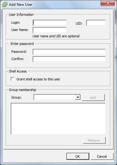 در قسمت Login نام کاربر و در قسمت Password ، یک کلمه ی عبور برای کاربر جدید مشخص کنید .