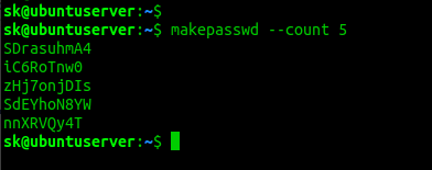 به طور پیش فرض، این دستور یک پسورد ایجاد میکند. اگر میخواهید بیش از یک پسورد، به عنوان مثال، 5 پسورد تولید نمایید، از دستور زیر استفاده کنید: